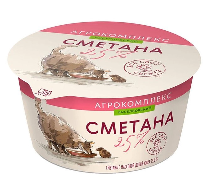 Нежнейшая густая сметана 25% жирности с мягким кисломолочным вкусом. Изготавливается по ГОСТ.